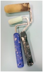 Tela on myös näppärä maalaushommissa. Niitä löytyy eri leveyksiä ja eri kohteisiin ja ne ovat vaihdettavia. Vaahtomuovitela on hyvä huonekalumaalauksessa ja se on helppo pestä kraanan alla.